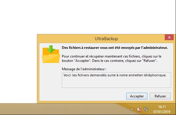 Grâce à l’interface Web UltraBackup installée sur le serveur, il est possible de parcourir les fichiers sauvegardés et de les restaurer depuis n’importe quel poste, même s’il n’est pas équipé du logiciel. L’administrateur peut aussi commander à distance l’extraction de données via la console d’administration et récupérer une archive ZIP contenant les fichiers demandés depuis l’interface Web.