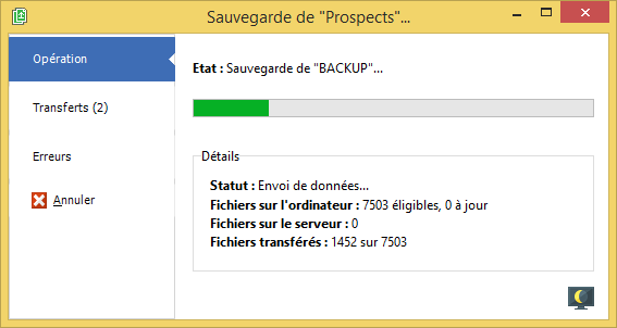 Les sauvegardes sont déclenchées manuellement ou automatiquement, depuis les postes client ou le serveur de sauvegarde. Elles s’exécutent même lorsque aucune session n’est ouverte et sont relancées jusqu’à leur terminaison en cas de coupures de connexion. Les fichiers peuvent même être sauvegardés de manière continue, dès que des modifications leur sont apportées, pour posséder toujours une copie de la dernière version de vos documents.