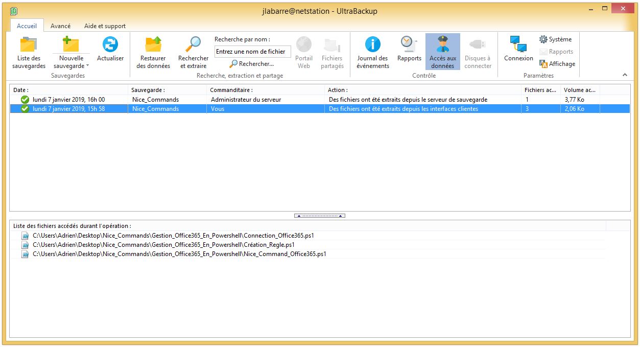 Le logiciel enregistre systématiquement toutes les opérations ayant entraîné l’accès aux données sauvegardées. Elles sont accompagnées de la liste complète des documents extraits et sont accessibles depuis la console d’administration ainsi que depuis les interfaces clientes. L’administrateur et les utilisateurs du serveur de sauvegarde peuvent vérifier et contrôler à tout moment qui a extrait ou restauré quelles données.